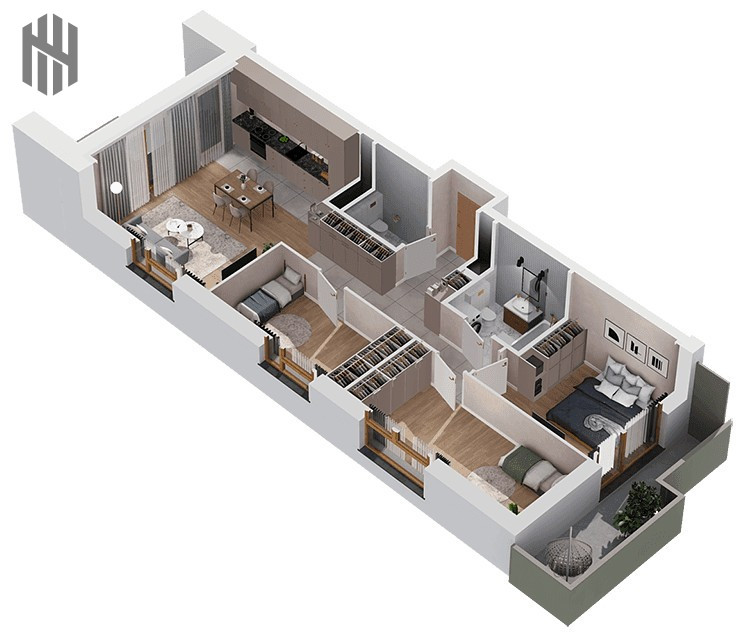 - zachodniej z wyjściem na balkon o powierzchni 6,88m2,